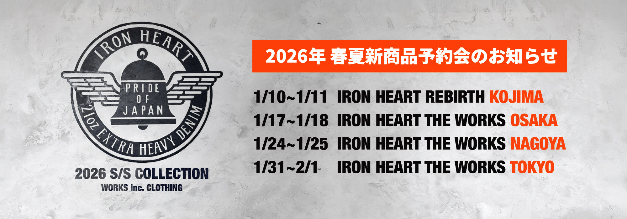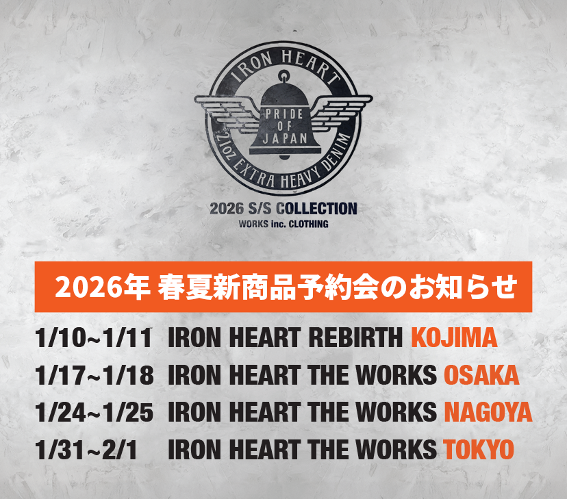 - INFO 2026年1月24日(土)~1月25日(日) 2026年春夏 新商品予約会 @IRON HEART THE WORKS NAGOYA