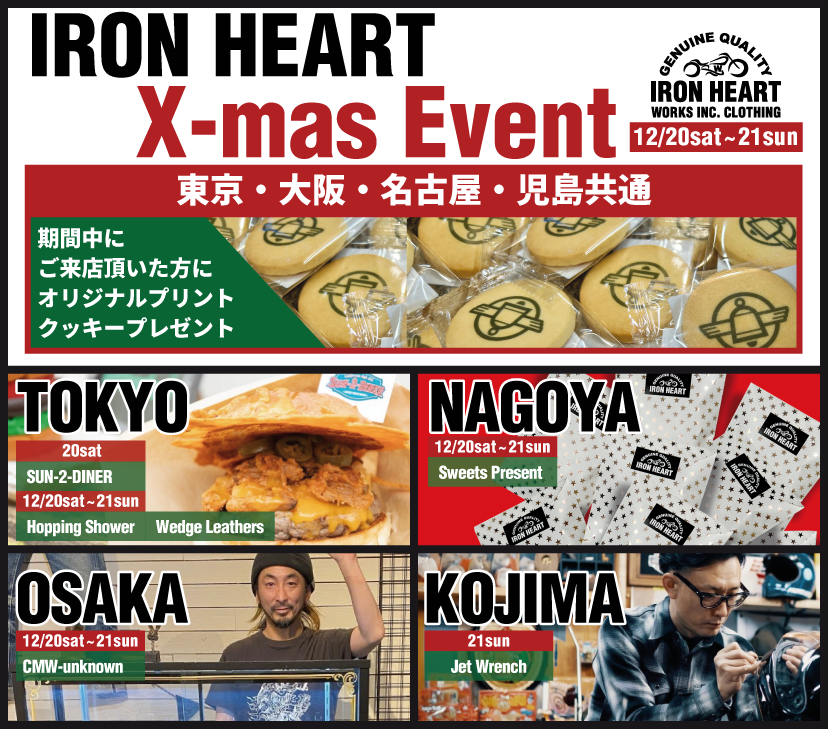 - EVENT 12/20(土)〜21(日)11:00-18:00 クリスマスイベント @アイアンハート直営店(東京・大阪・名古屋・児島)