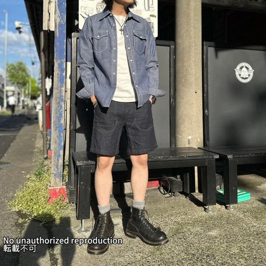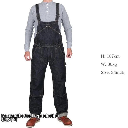 21ozセルビッチデニム ダブルニーオーバーオール/インディゴ