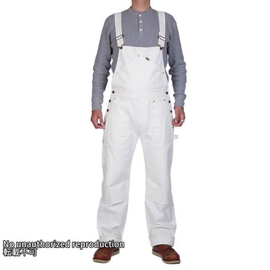 10.5ozホワイトヘリンボン ダブルニーオーバーオール
