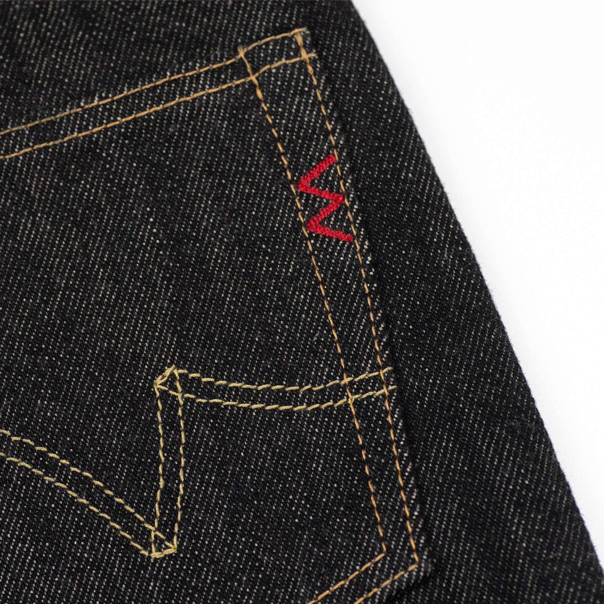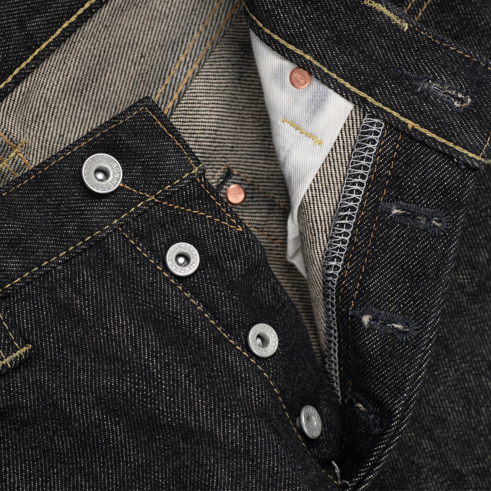 カラー以外の仕様はインディゴモデルと同一です。染色にはインディゴ同様の硫化染料を使用しており、穿き込むことでヒゲやシワが現れ、徐々にブラックからグレーへと色落ちをしていく経年変化が楽しめます。