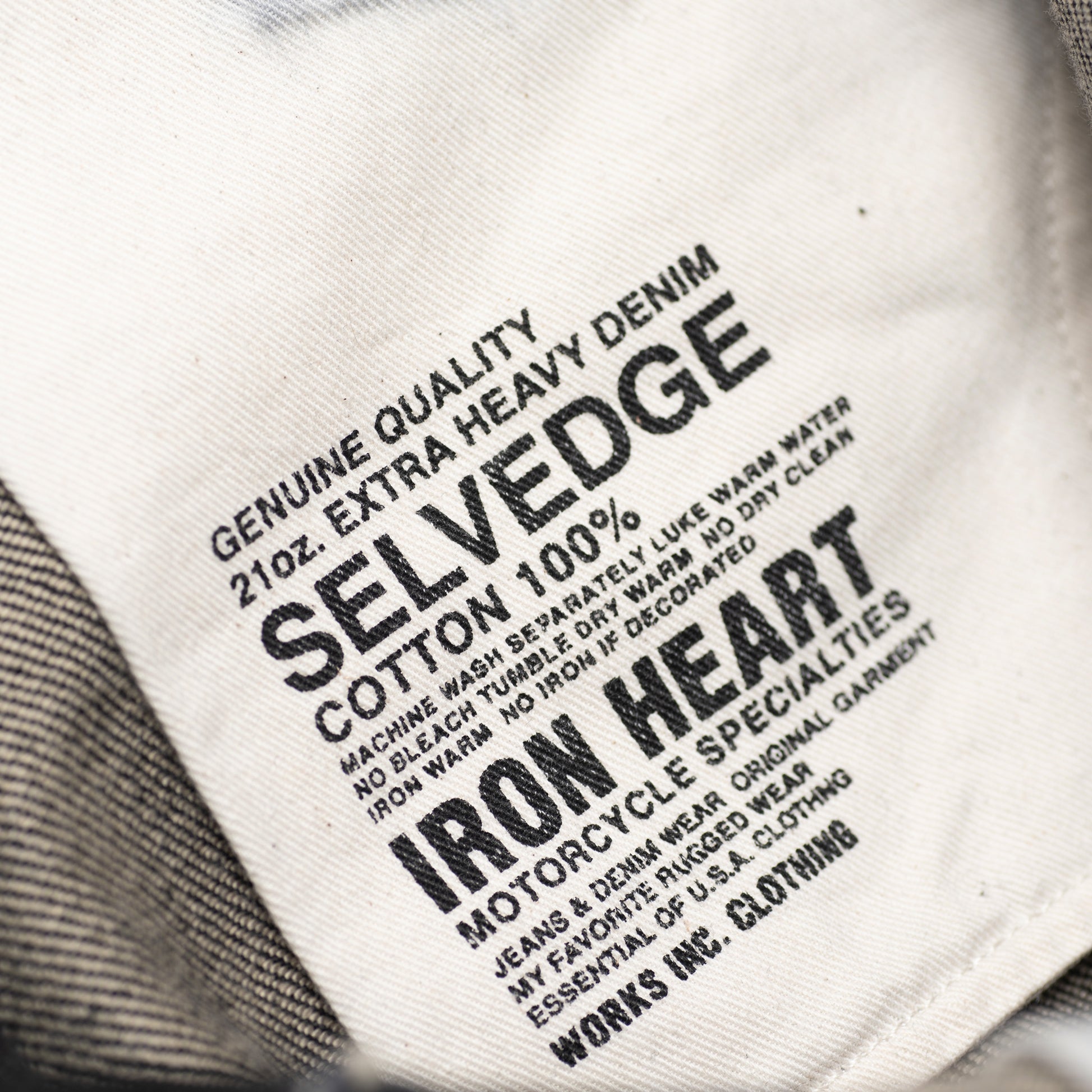 - IRONHEARTオリジナルの21ozセルビッチデニムを使い、2003年の発売開始以来、日本で世界でヘビーオンスジーンズのブームを生んだアイアンハートを代表するジーンズ。