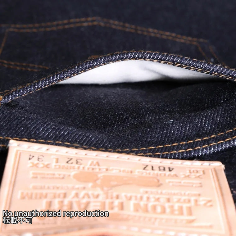 - 生地は21ozデニムのウルトラハードな硬仕上げを採用