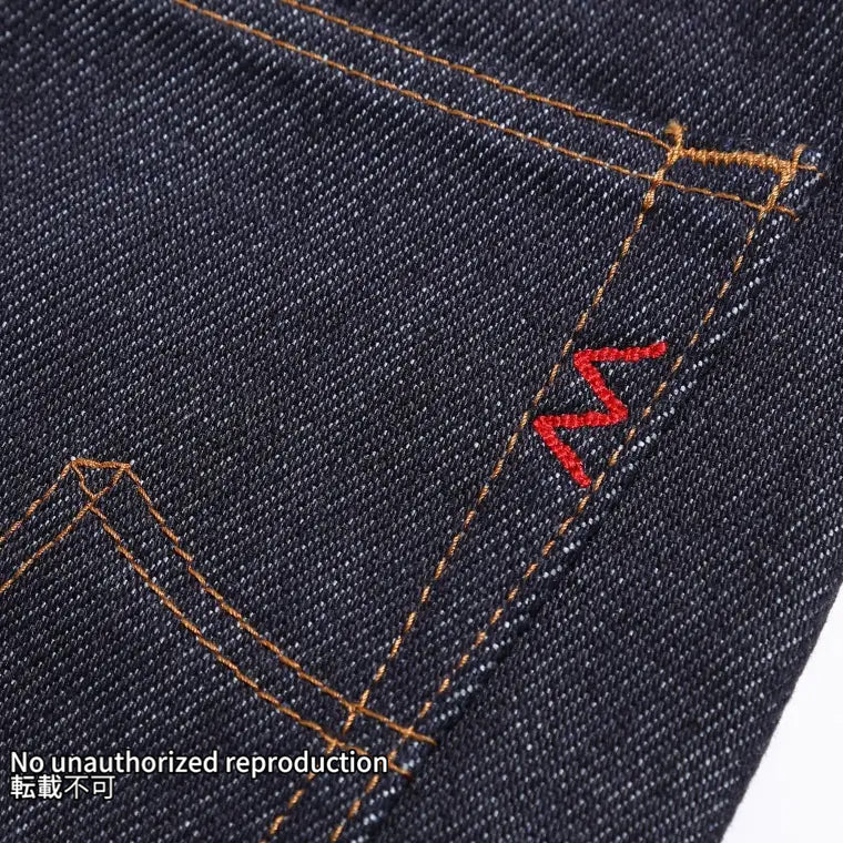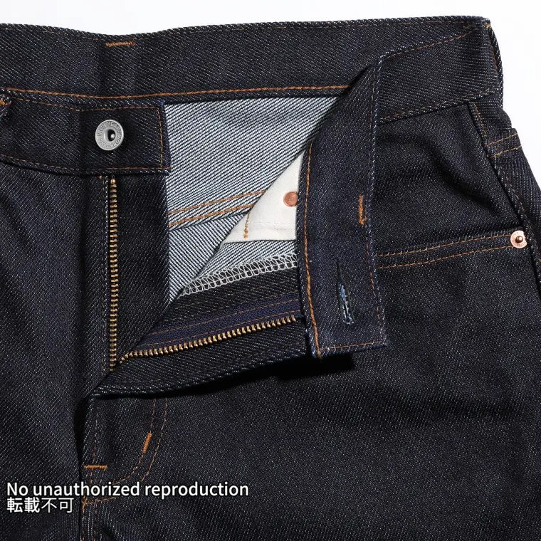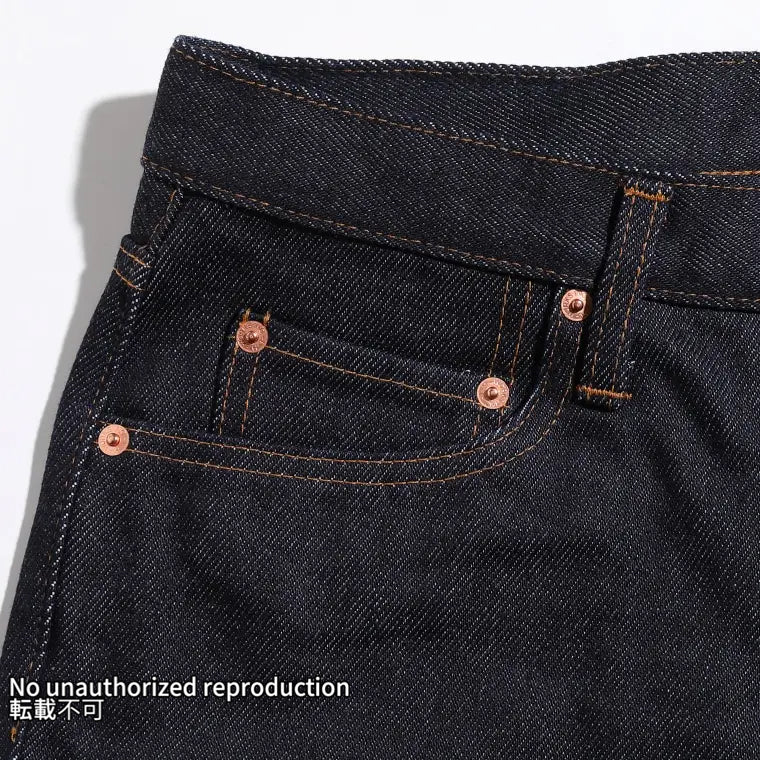 - 生地は、特殊な仕上げ方で、リジッドで光沢のある昔のデニムのような生感を再現