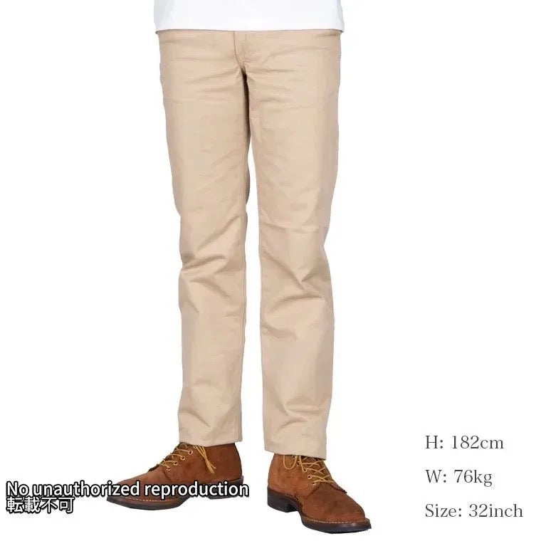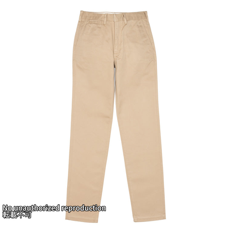- 12ozのオリジナルヘビーチノを使ったスッキリしたシルエットが特徴のチノパン