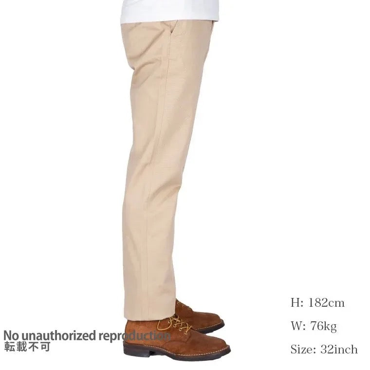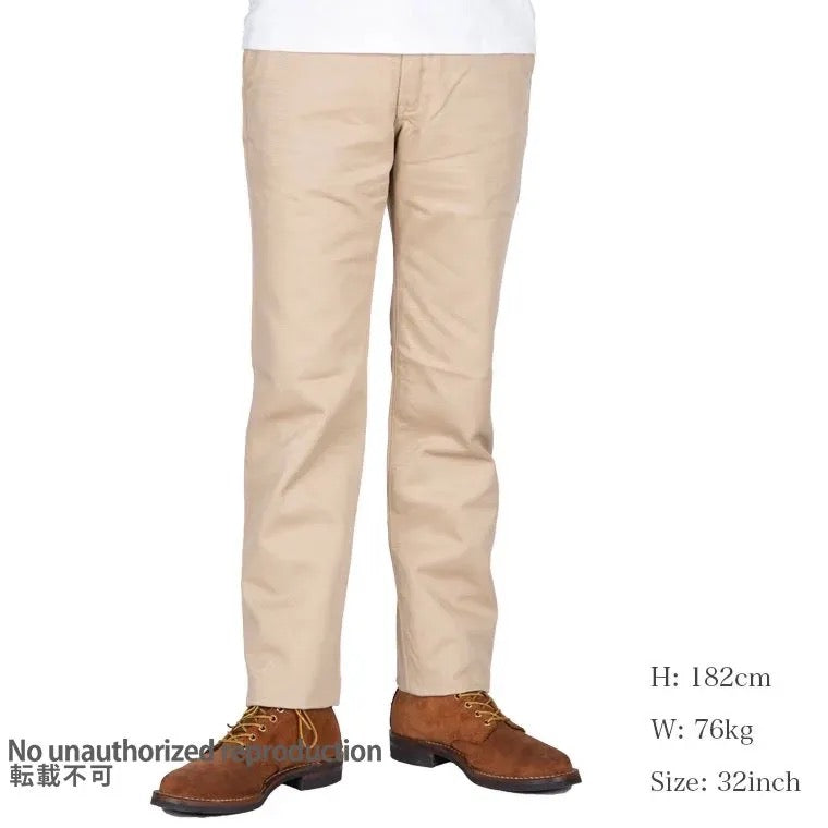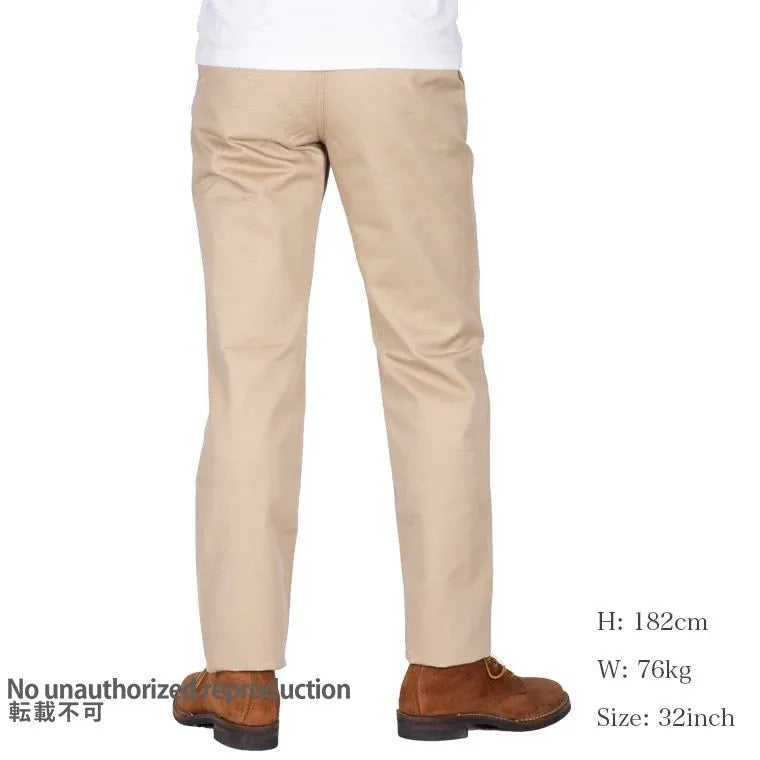 - 12ozのオリジナルヘビーチノを使ったスッキリしたシルエットが特徴のチノパン