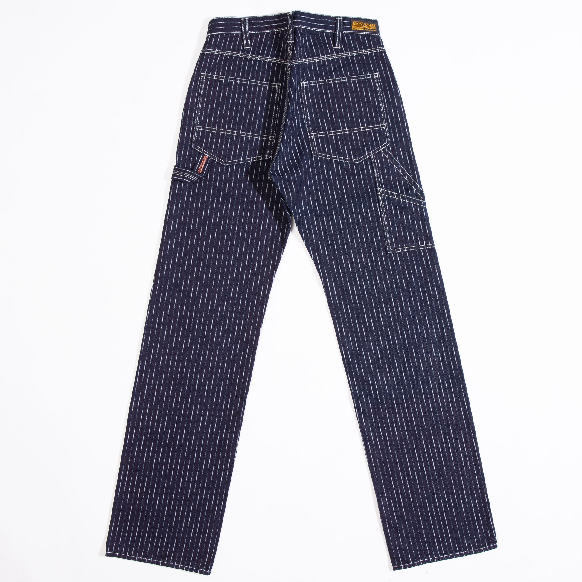 ・しっかり染めた経糸と緯糸で織り上げ、昔ながらの抜染手法でドットプリントを配した12oz素材