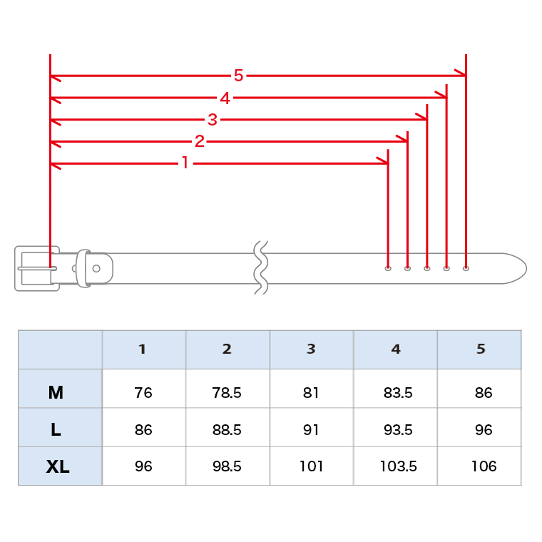 【バックル側でのベルトサイズ調整方法】