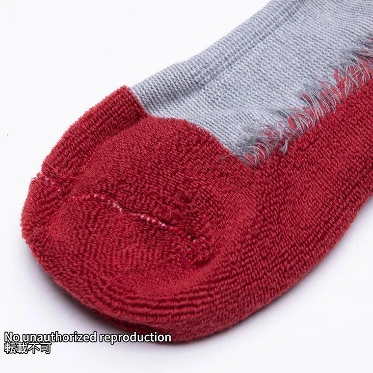 - 長時間はいていて疲れにくいように、底とつま先とかかとの生地は2重のパイル編 み(通常に比べクッション性がある)になります。