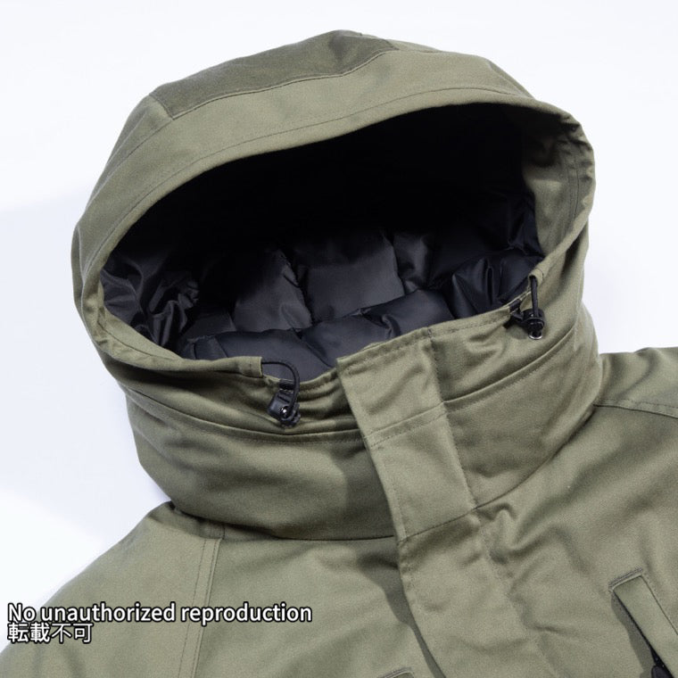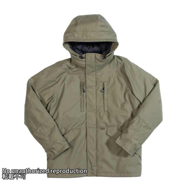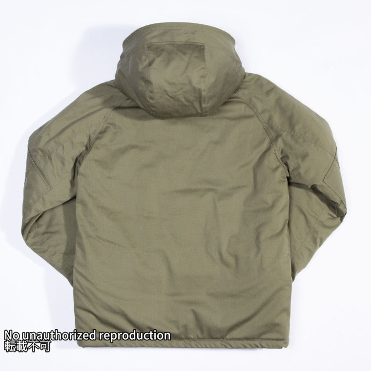 アメリカ軍の寒冷地用防寒着の中材として開発・使用されている高機能中綿です。ダウンと同等の保温性・コンパクト性・透湿性を誇りながら、優れた撥水性も兼ね備えています。
