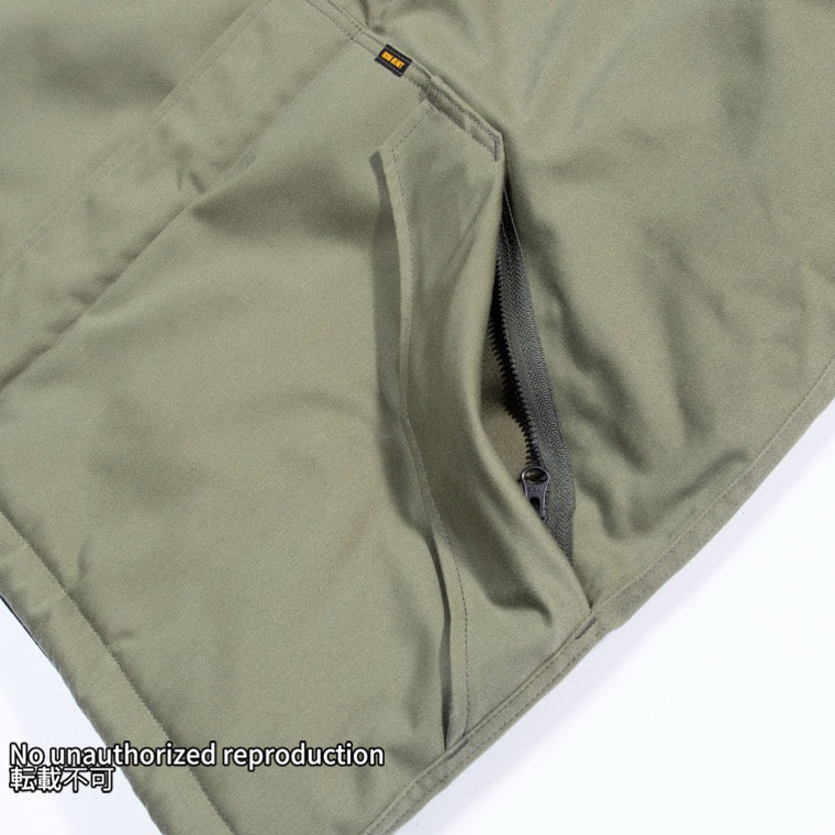 - 胸の縦ポケットはファスナー開きで左右にひとつずつ。