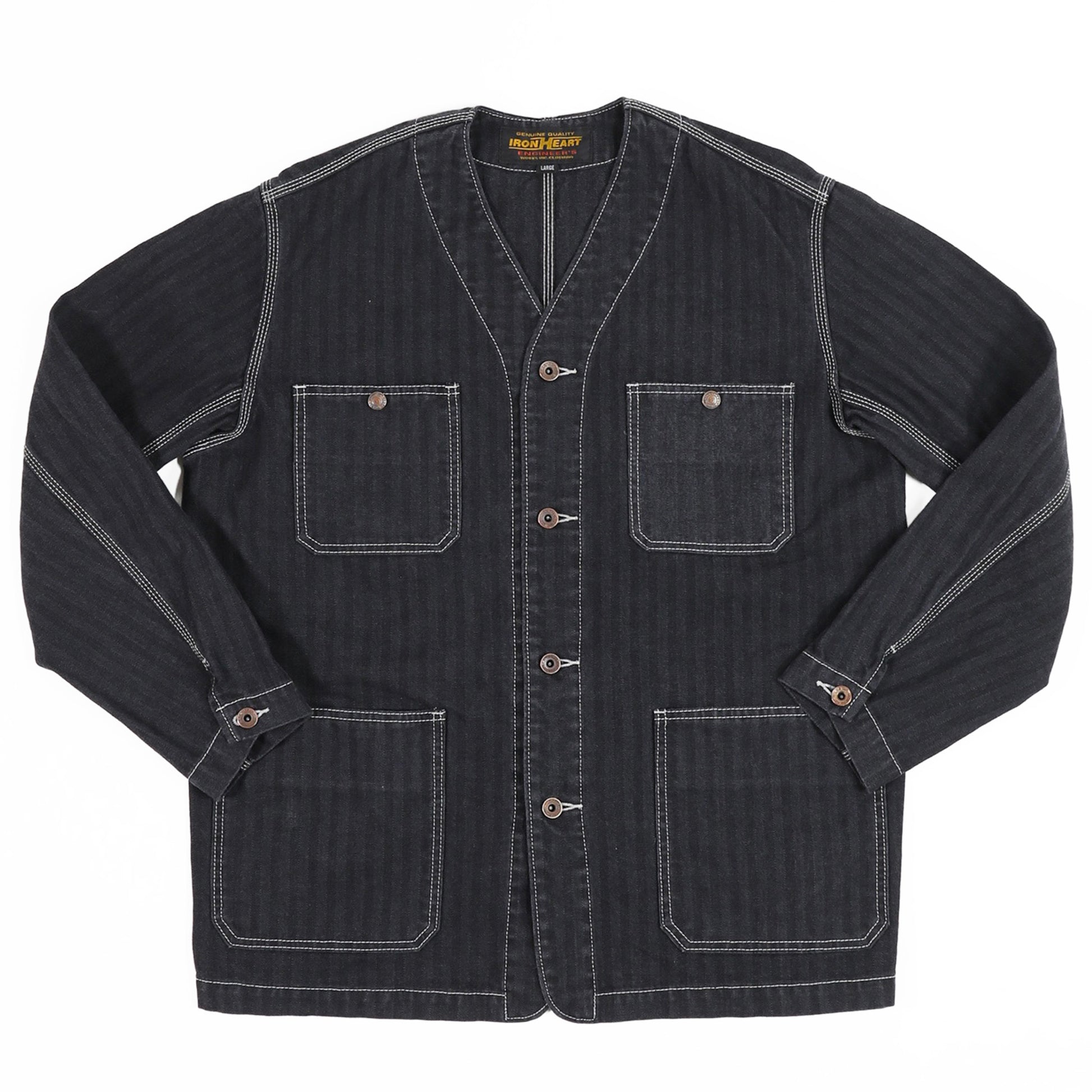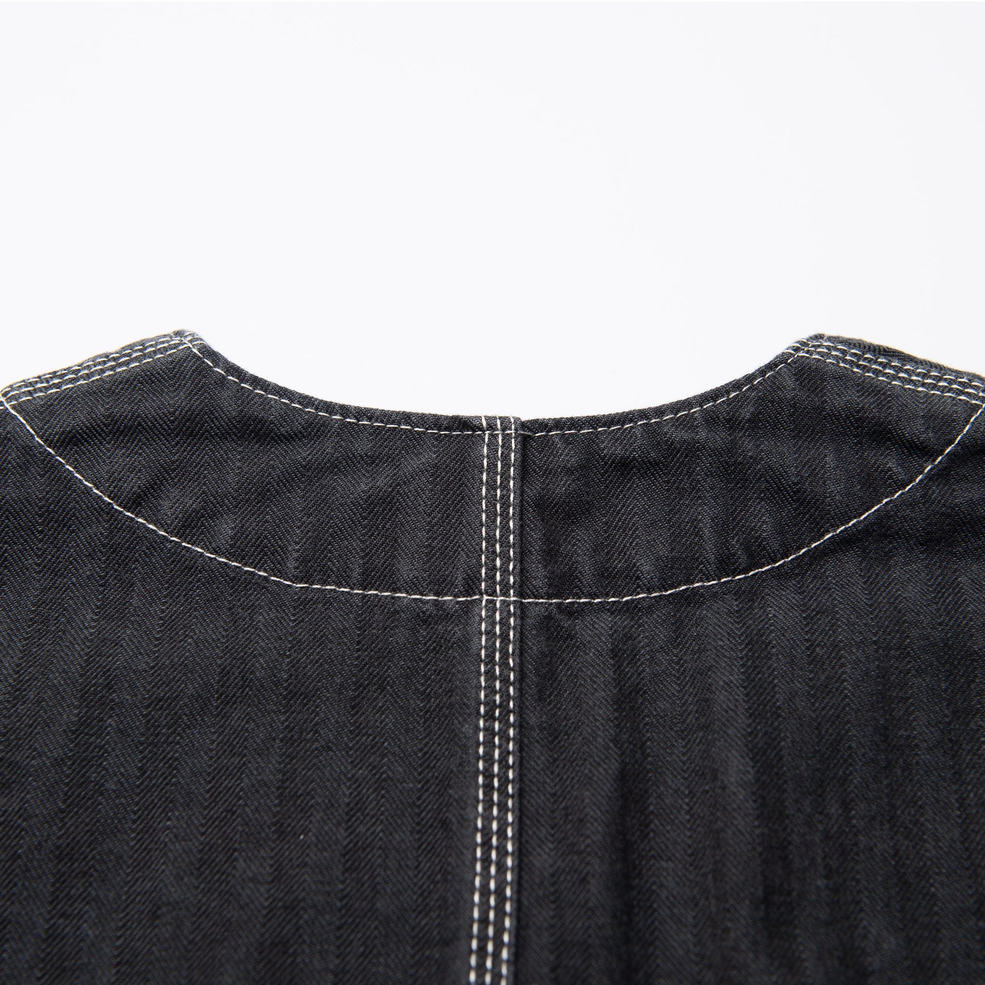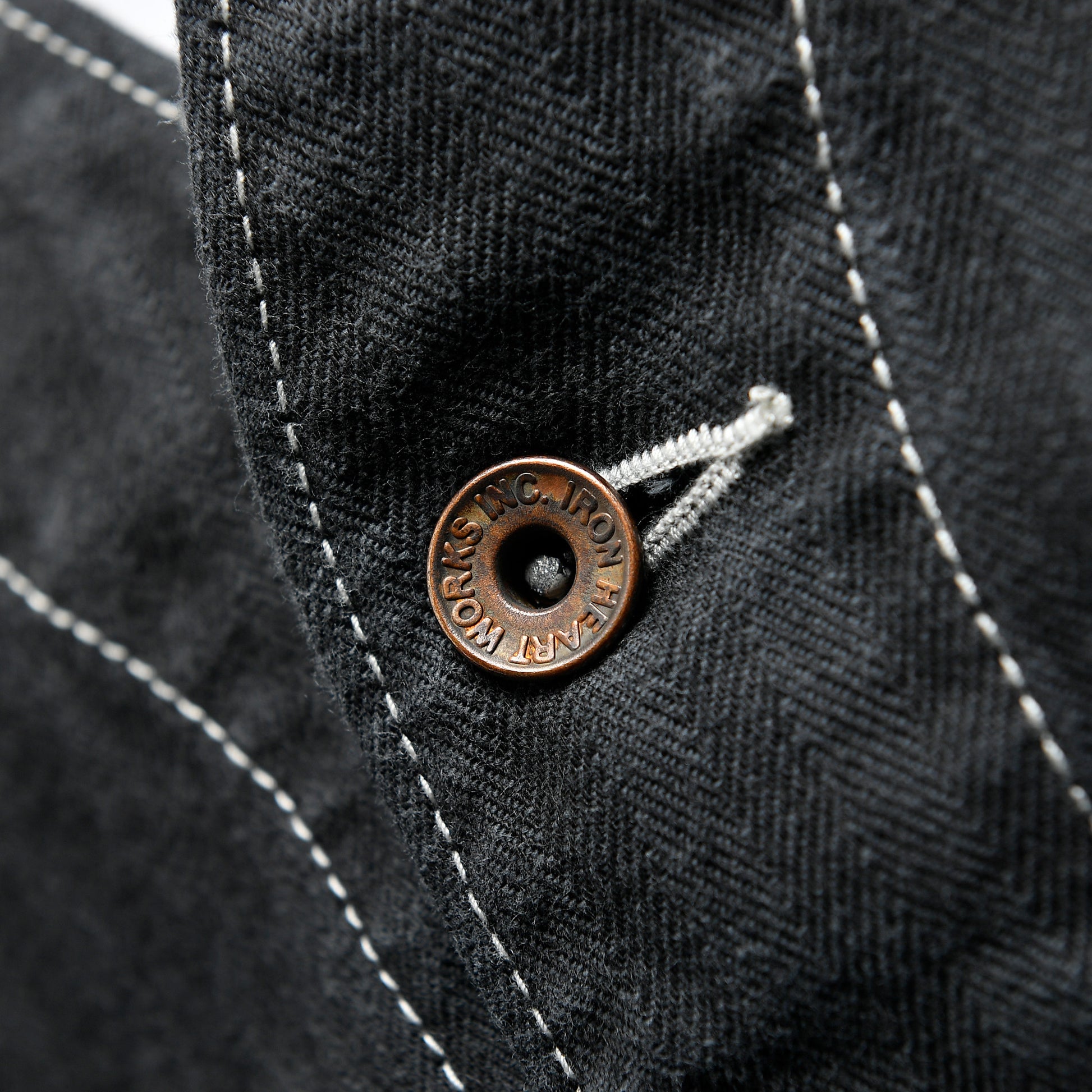 10.5ozのヘリンボーンは、経糸に硫化染めのブラック、緯糸にホワイトを配し、さらにブラックのオーバーダイを施した奥行きのある表情が魅力。