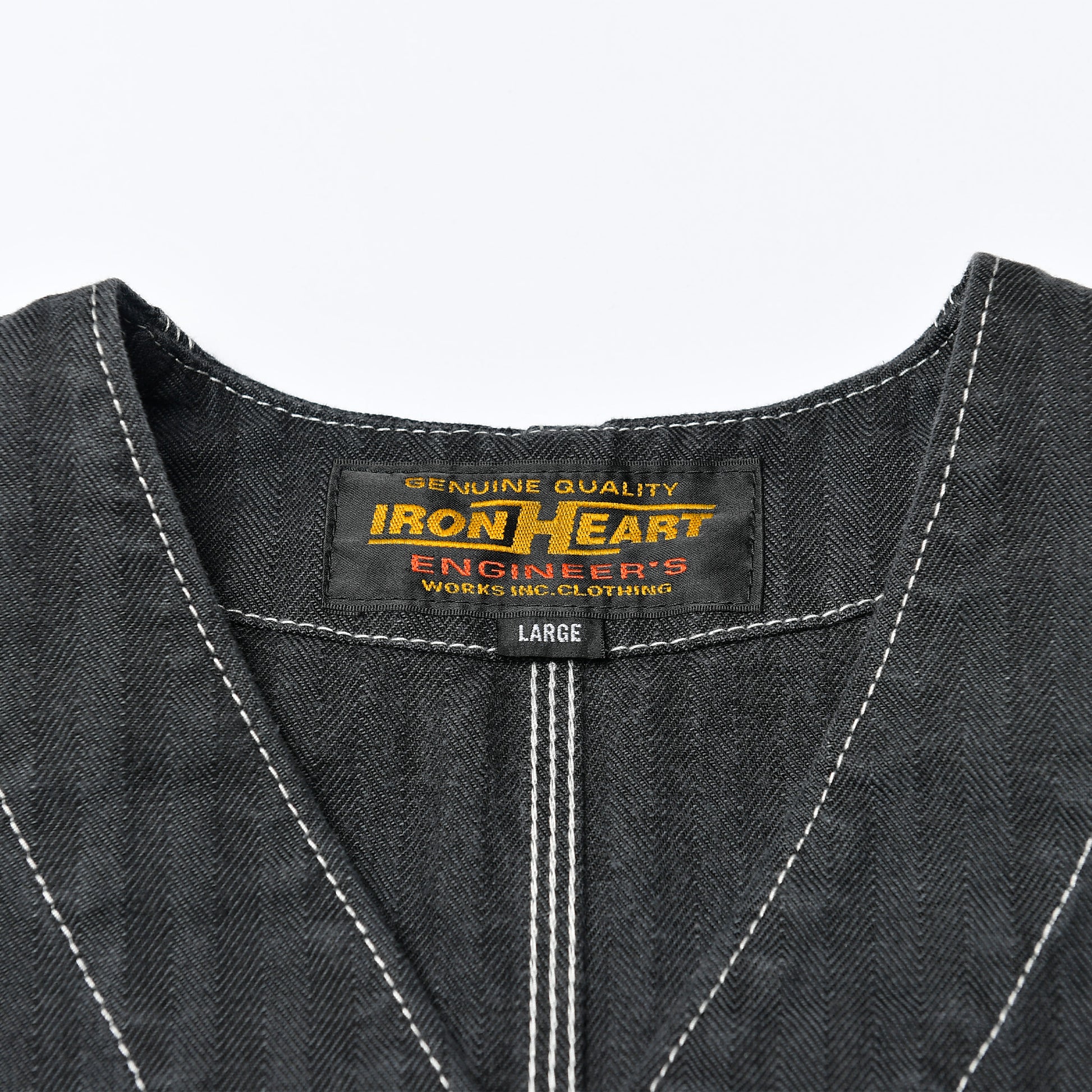 あえて白のスパン糸で仕上げることで、オーバーダイ後もステッチがしっかりと映え、存在感のある一着に仕上がっています。