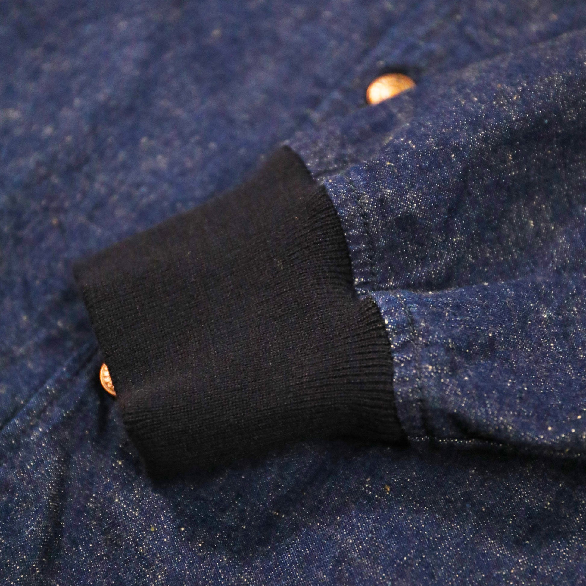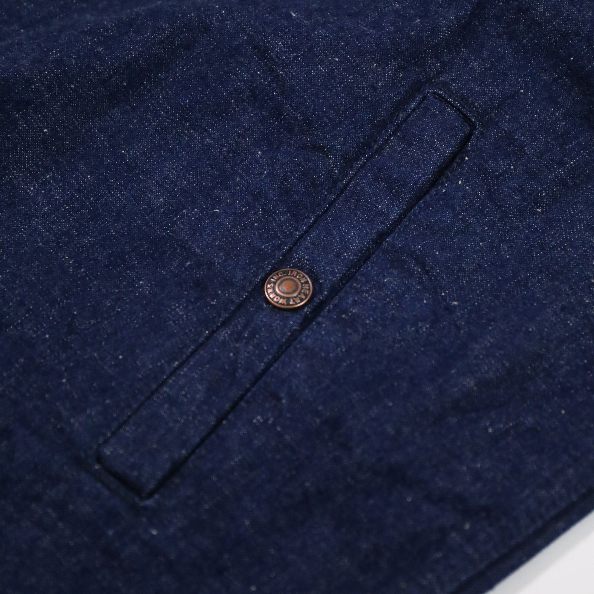 生地は10ozの2-1デニム(抜き糸はグレー)。経糸には、白くポコポコと浮いてるようなネップ糸をあえて採用。