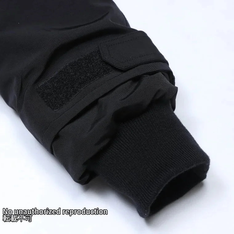 - ・両脇内側にあるドローコードで裾の絞り具合を調整でき、袖口は中リブ付きに加えベルクロで絞れる 2 重仕様とバイクに乗る際に便利なアイアンならではの仕様。