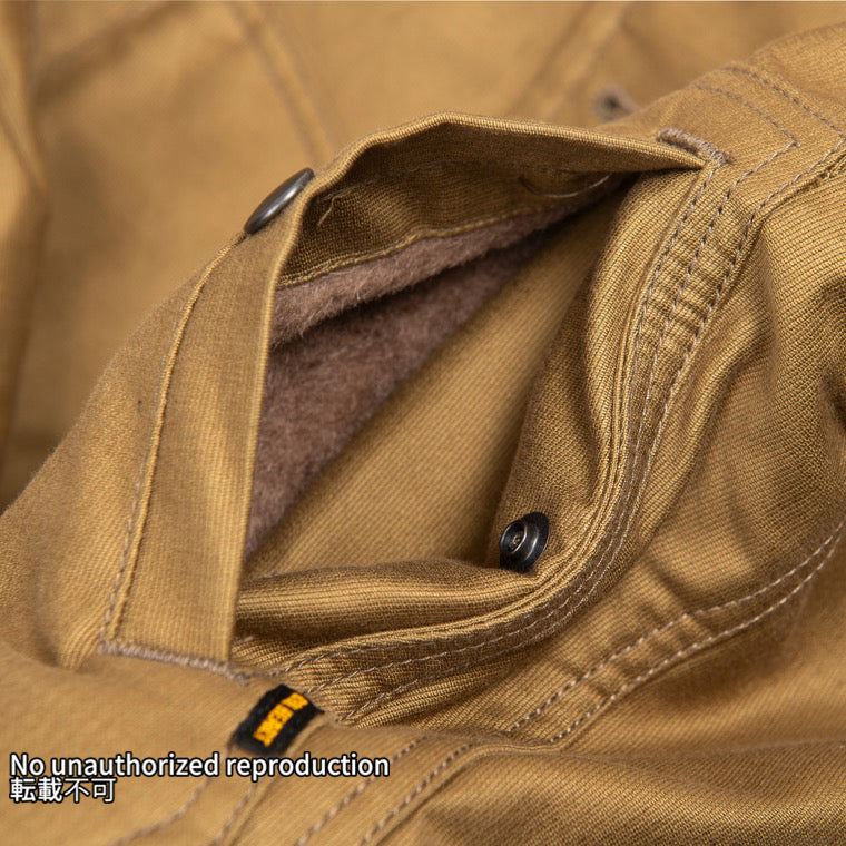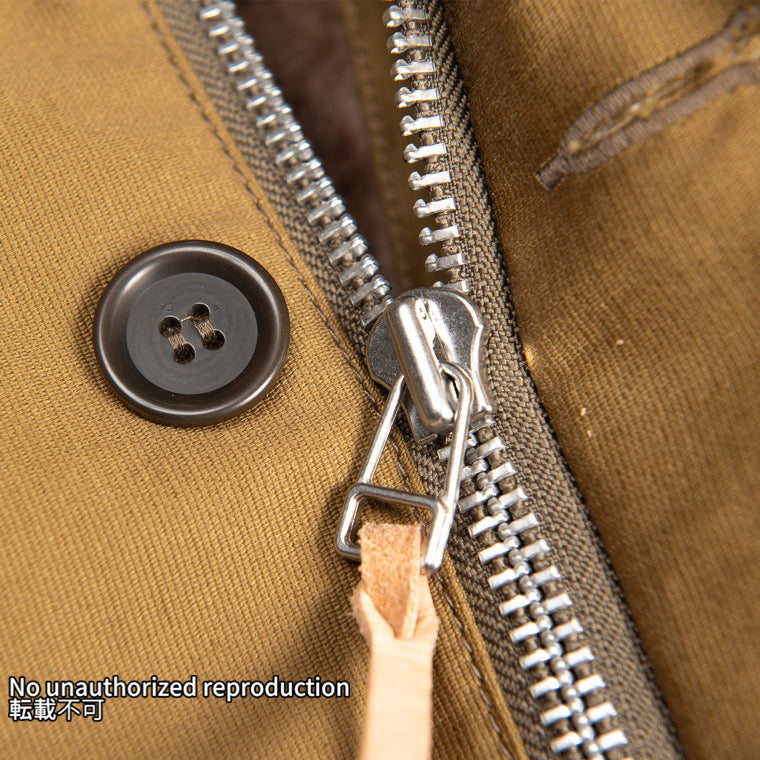 - フロントはダブルジッパー、 ボタンの二重留めでバイクで走る際の風の入りこみを防ぎます