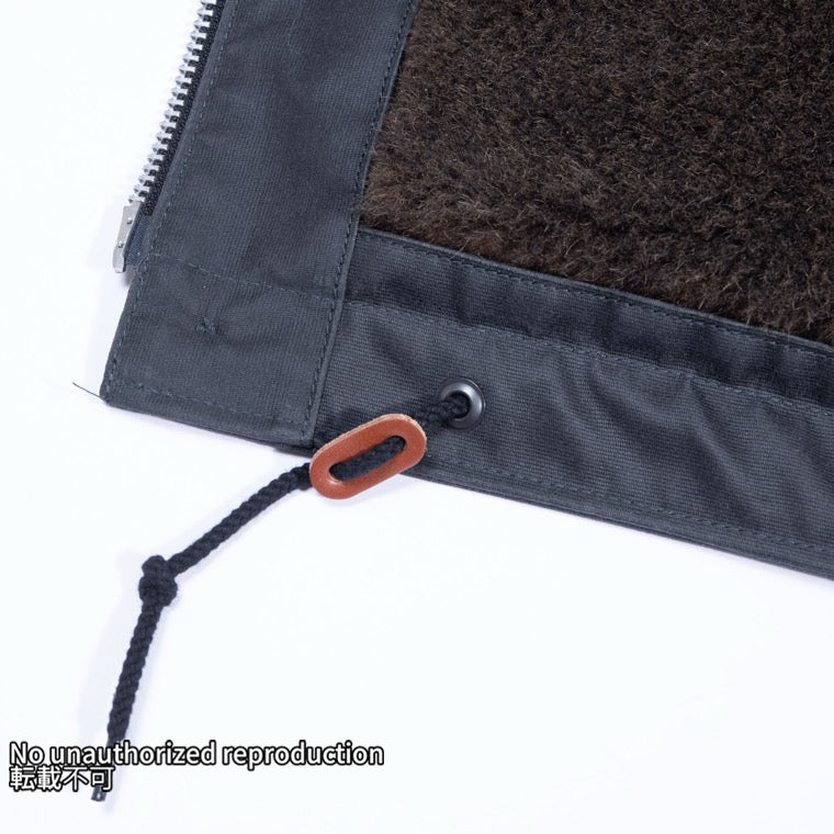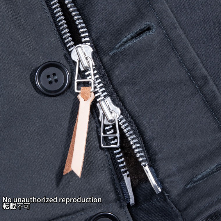 - オイルとウレタン系樹脂とで撥水性を持たせたオイルタッチコーティングを施し、不意の雨でも大丈夫な一着に仕立てました(完全防水ではありません)