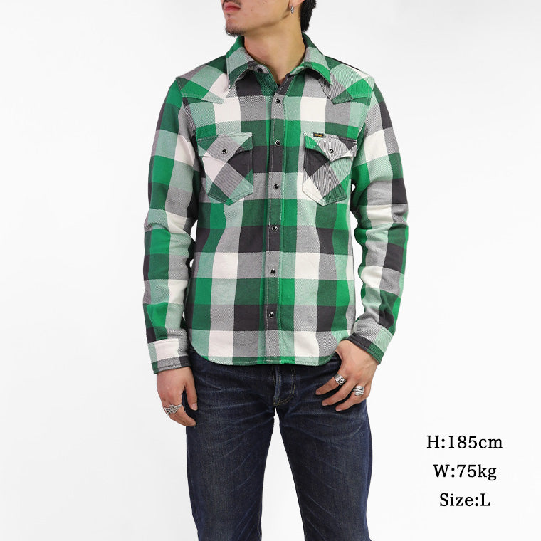 ・アスペロコットンを使ったなめらかな生地のウエスタンタイプフランネルシャツ